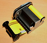 Making sure that the dark slide is in it's proper position to prevent light from hitting the film, replace the insert into the housing and close it it, making sure that the cover latches. |
